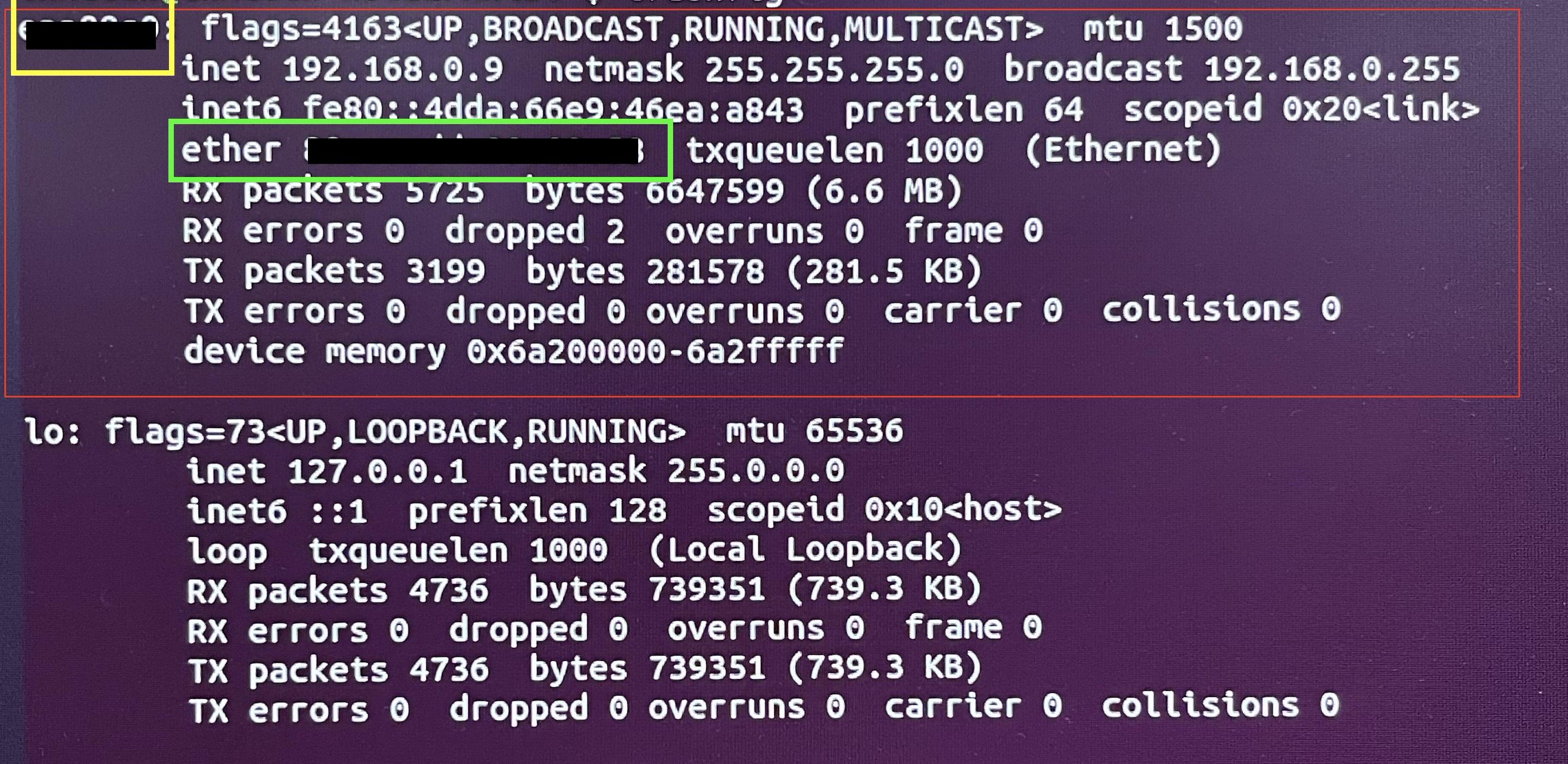 위에 ifconfig에서 확인했던 MAC 주소를 입력하면 됩니다.