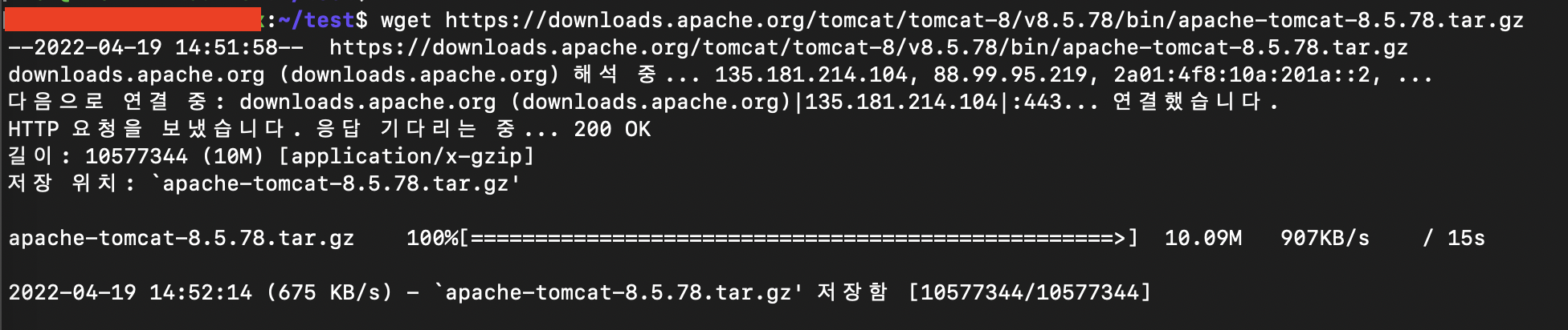 $ wget https://downloads.apache.org/tomcat/tomcat-8/v8.5.78/bin/apache-tomcat-8.5.78.tar.gz