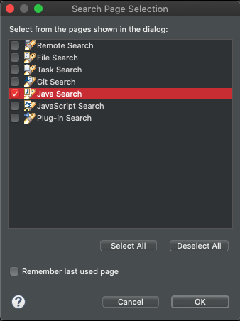 내가 원하는 검색 탭을 설정하는 부분인데 여기서 [Java Search]를 선택한 후 OK 버튼으로 저장합니다.