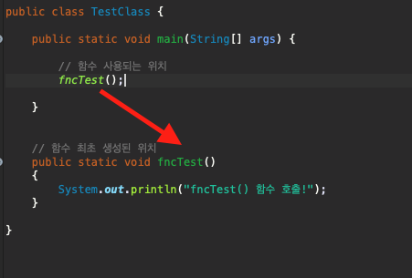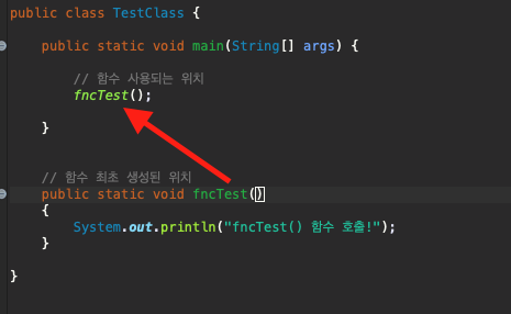 예제를 보면 main함수에서 fncTest함수를 호출하였습니다.