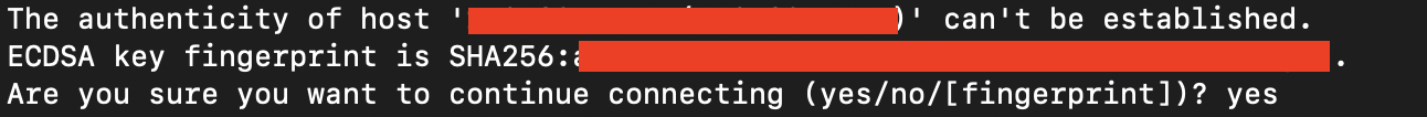 The fingerprint for the ECDSA key sent by the remote host is