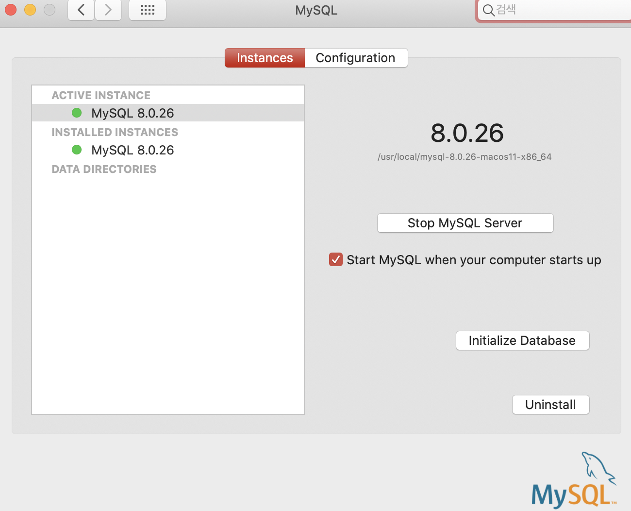 시스템 환경설정에서 mysql 항목에 들어가서 버전을 확인했습니다.