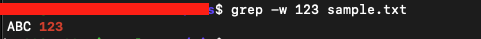 sample.txt 파일에서 "123"이라는 문자열을 아래 명령어로 찾고자 합니다.