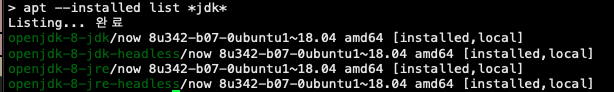 위 명령어를 사용하여 이미 설치된 항목을 확인할 수 있습니다.