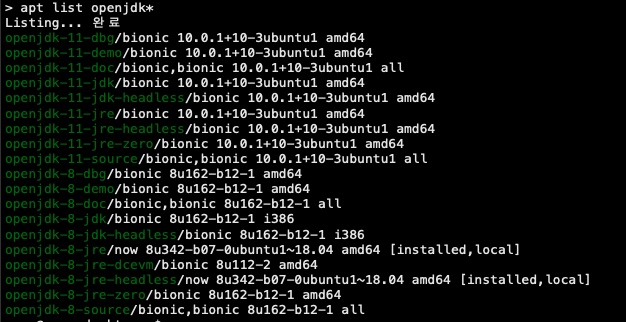 예시로 openjdk의 패키기 목록을 검색해보도록 하겠습니다.