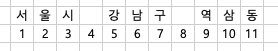아까와 같이 "서울시 강남구 역삼동"에서 특정 문자의 위치를 찾아보겠습니다.